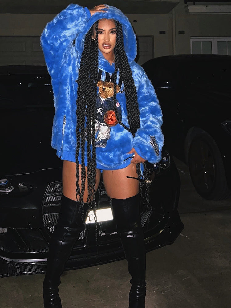 "Bright blue, super fleece, teddy bear with rhinestone. Cool style what I like."@Lihini Rose
