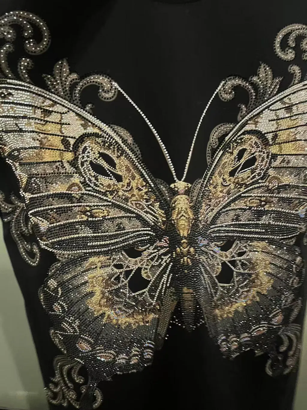 TCH Vintage Rhinestone Butterfly Shiny T-Shirt