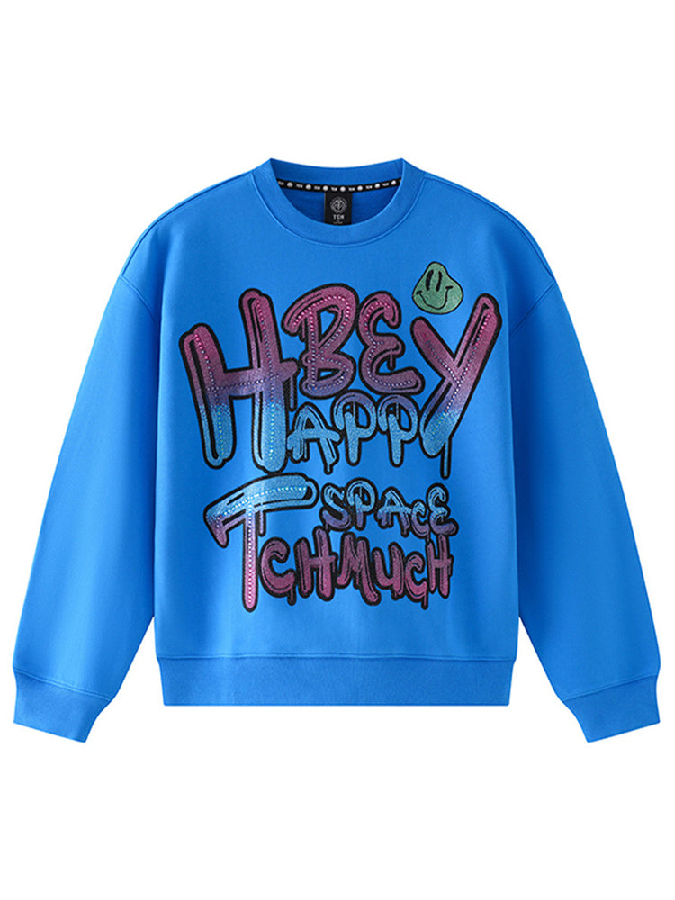 TCH Men's Letter Print Rhinestone Sweatshirt Top