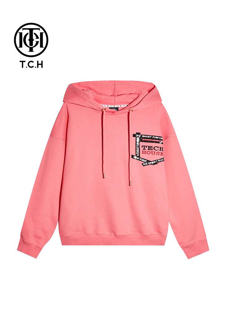 TCH Drawstring Rhinestone Letter Oversized Hoodie with Pink
