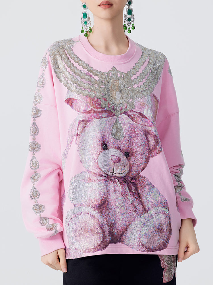TCH Rhinestone Panda Oversized Pullover Sweatshirt-U.K