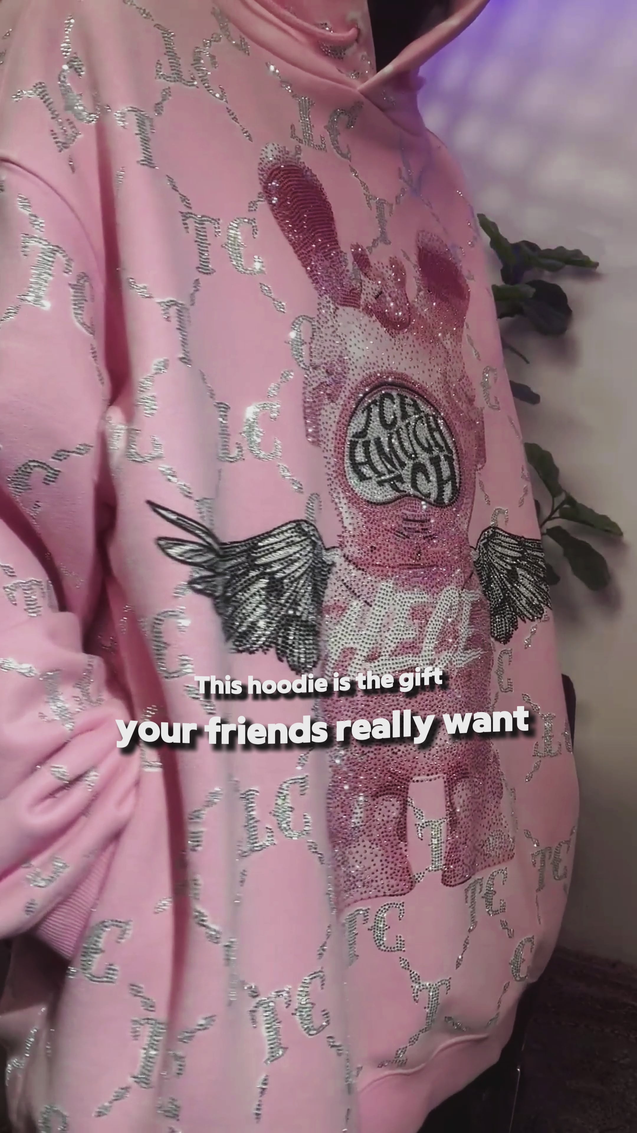 TCH Rhinestone Cartoon Graphic Pink Fall Hoodie