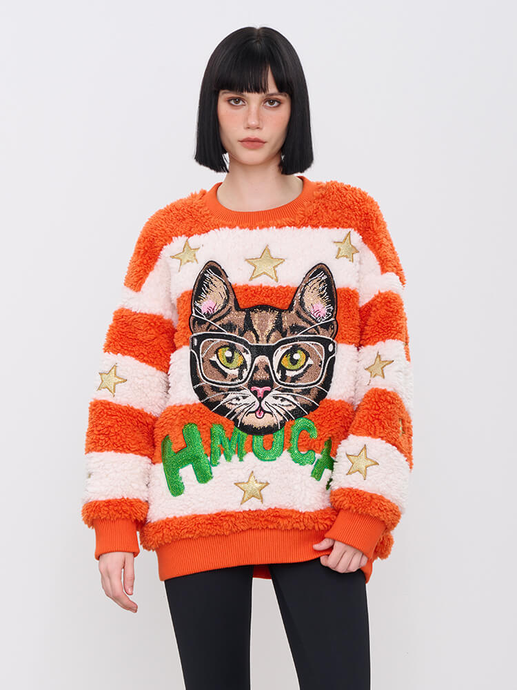 This season's choice fluff is all about keeping warm . Shearling-lined hoodie sweater is taking over this season, adding warmth and luxury to your outfits with an effortless flair. Whether opting for a classic shearling dress or fluffy accessories, be prepared to turn heads and stay snug all season.