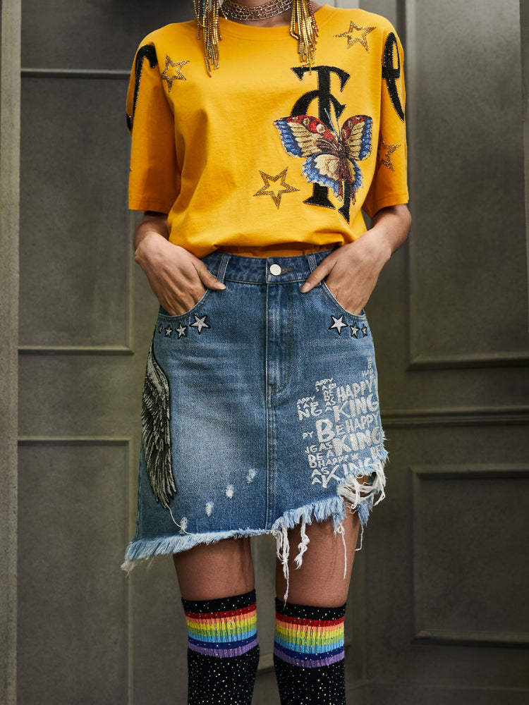 Denim on jacket, with a side of denim. This nostalgic trend is making a major comeback with endless possibilities, from denim jackets paired with jeans to denim shirts layered over denim skirts. Mix and match different washes and textures for a playfully chic ensemble.