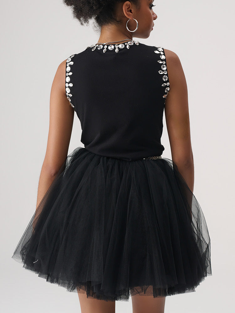 TCH Rhinestone Vintage Puffy Black Tutu