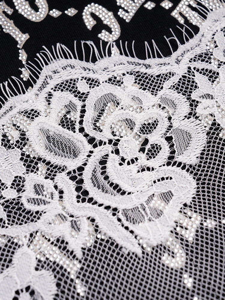 TCH Crystal-Logo Lace Contrast Street T-shirt Dress