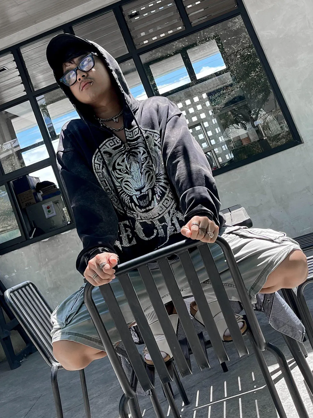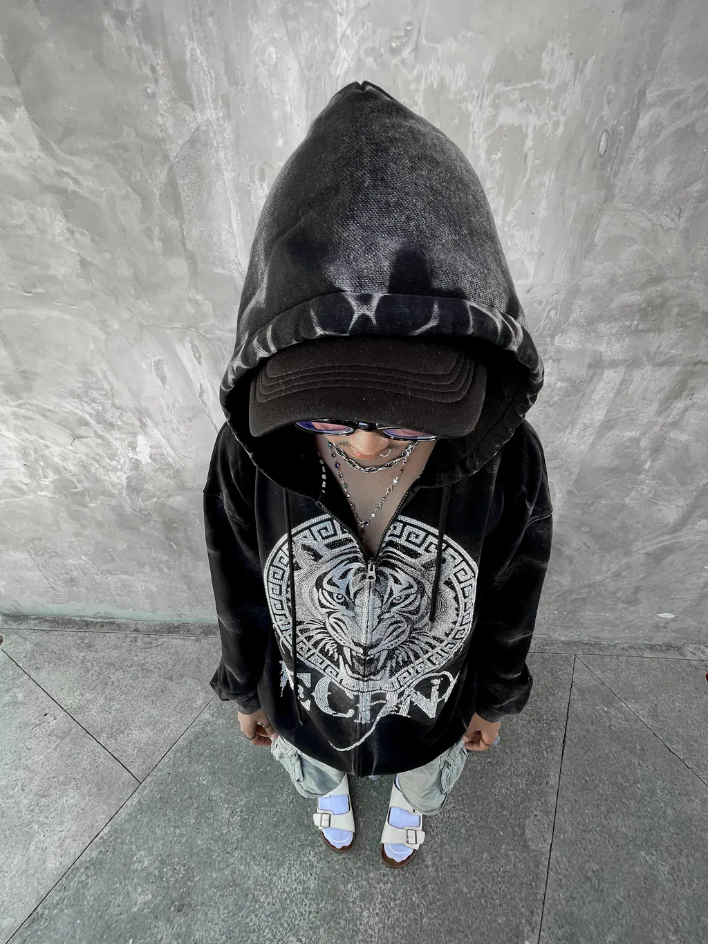 TCH Distressed Tiger Rhinestone Hoodie Jacket