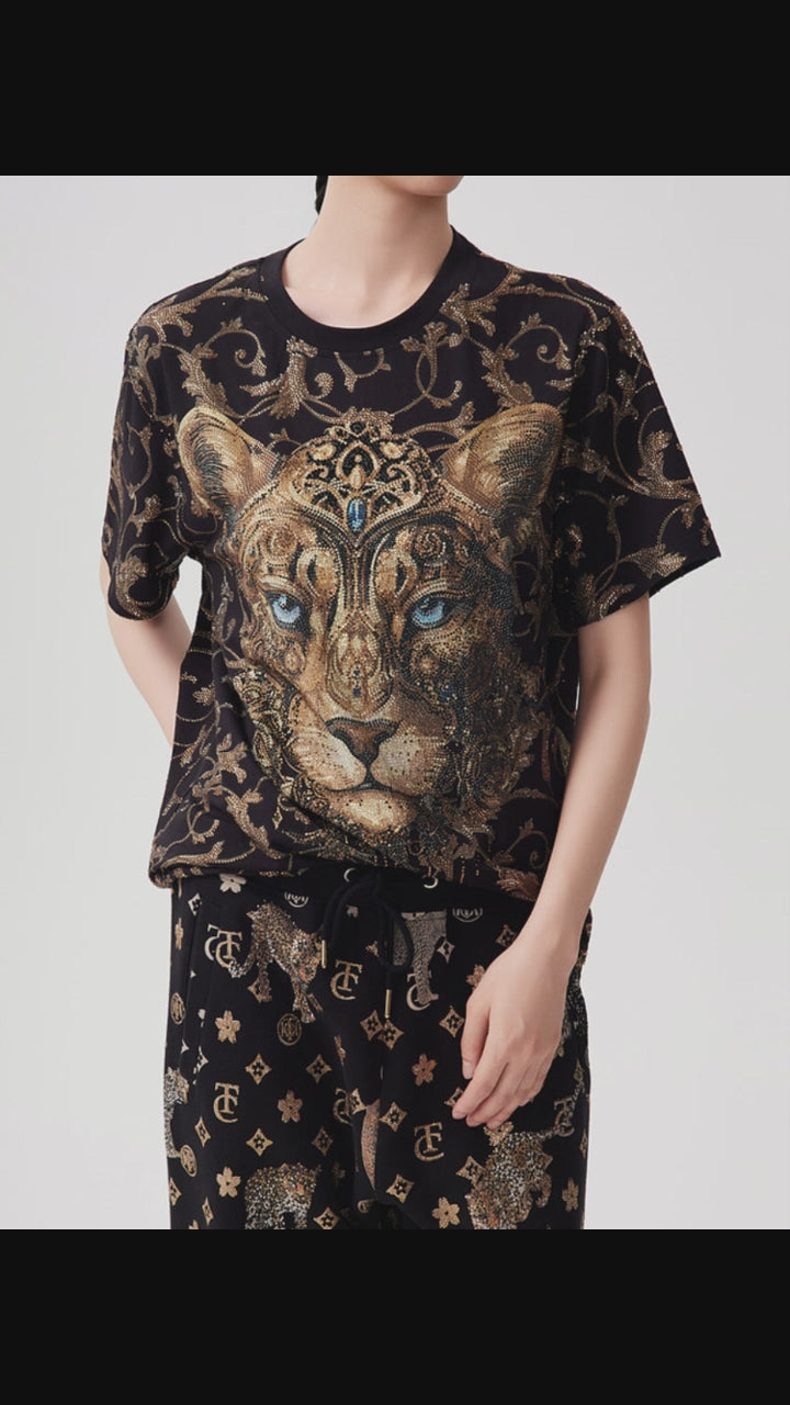 TCH All Over Print Rhinestone Lion Mane Fashion Tee