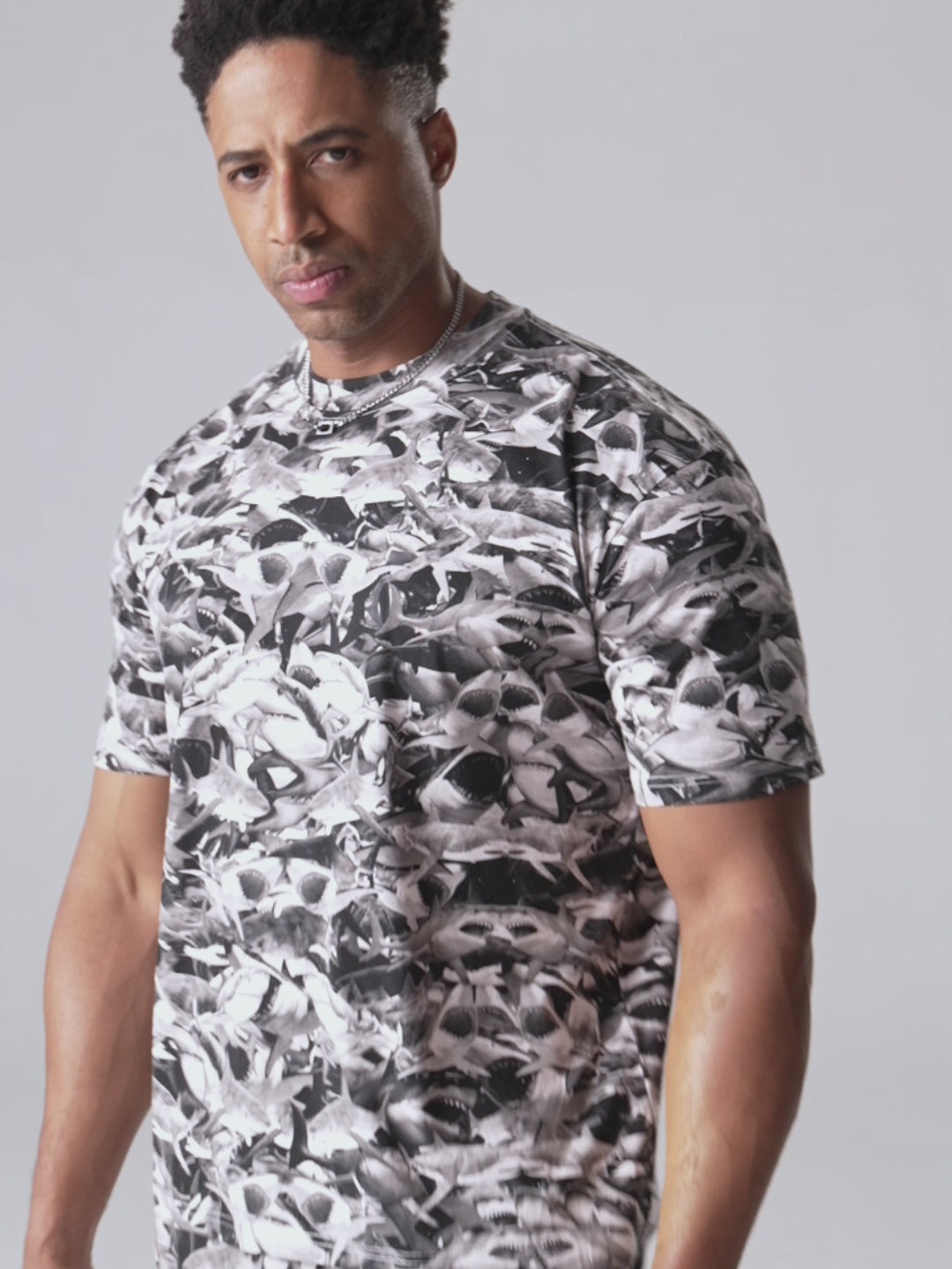 TCH Allover Rhinestone Shark Hawaiian T-Shirt
