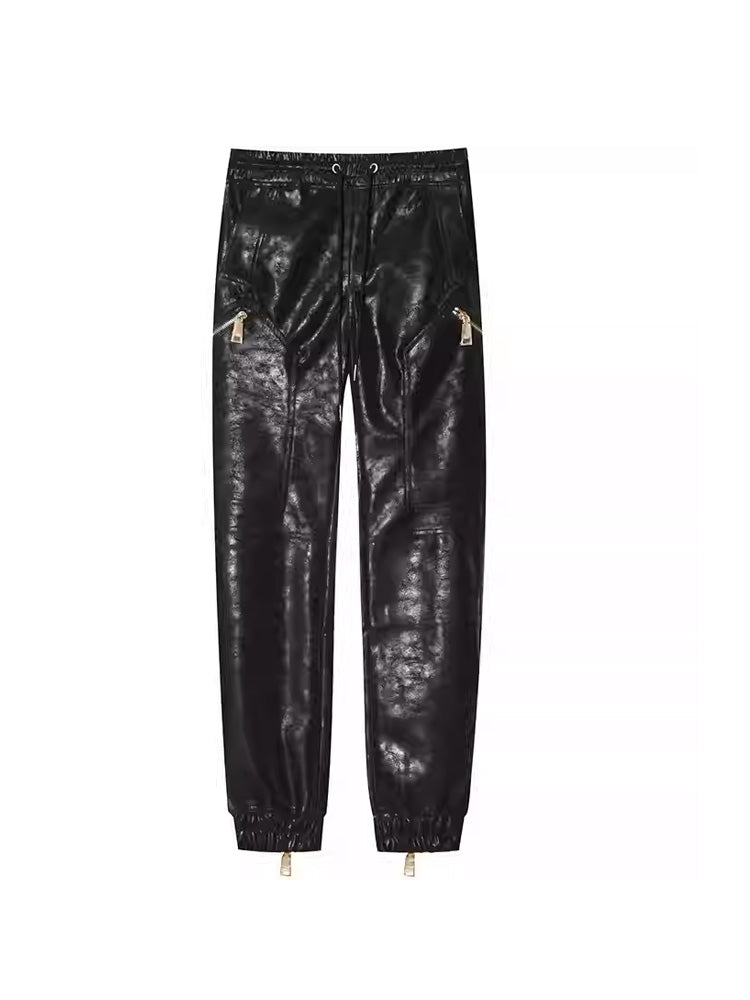 TCH Letter Print Rhinestone Joggers Leather Pants