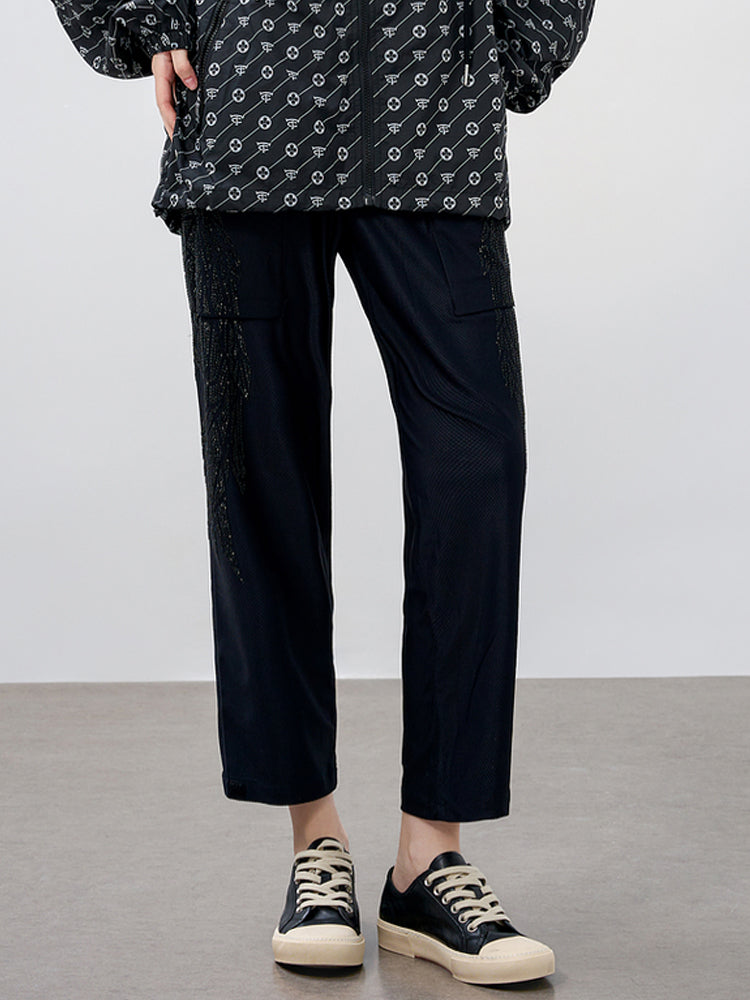 TCH Crystal-Embellished Zipper Loose Jogger
