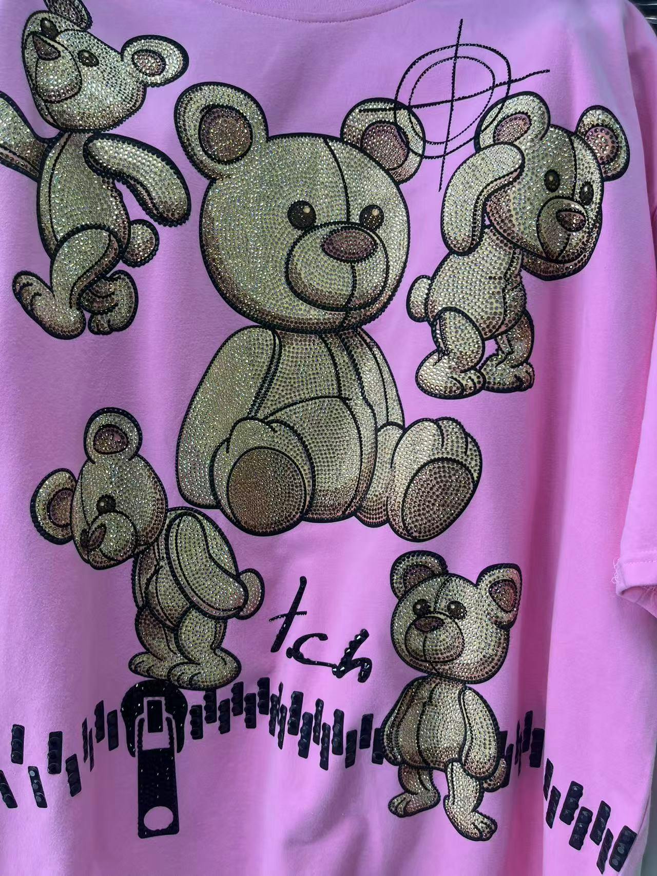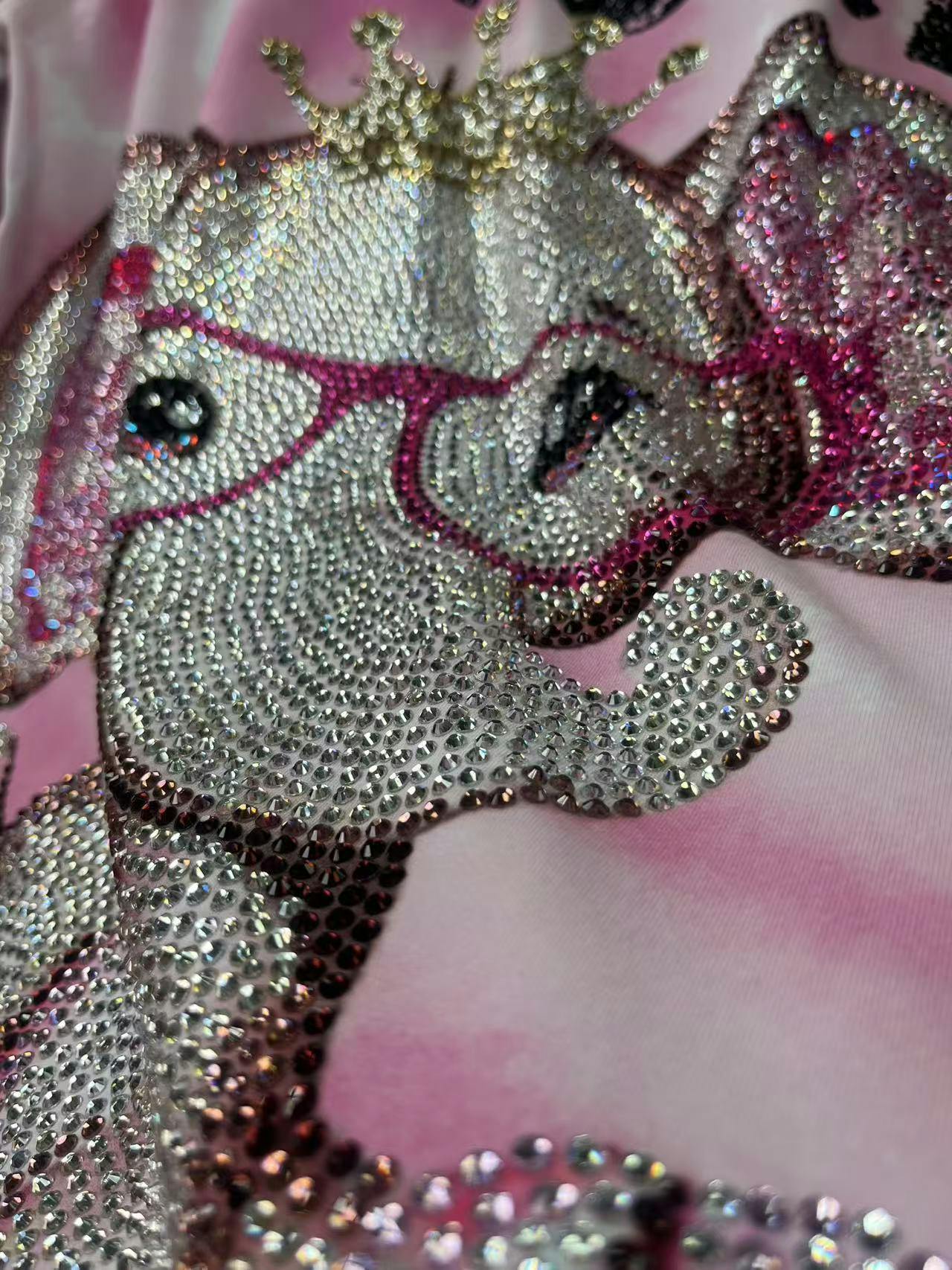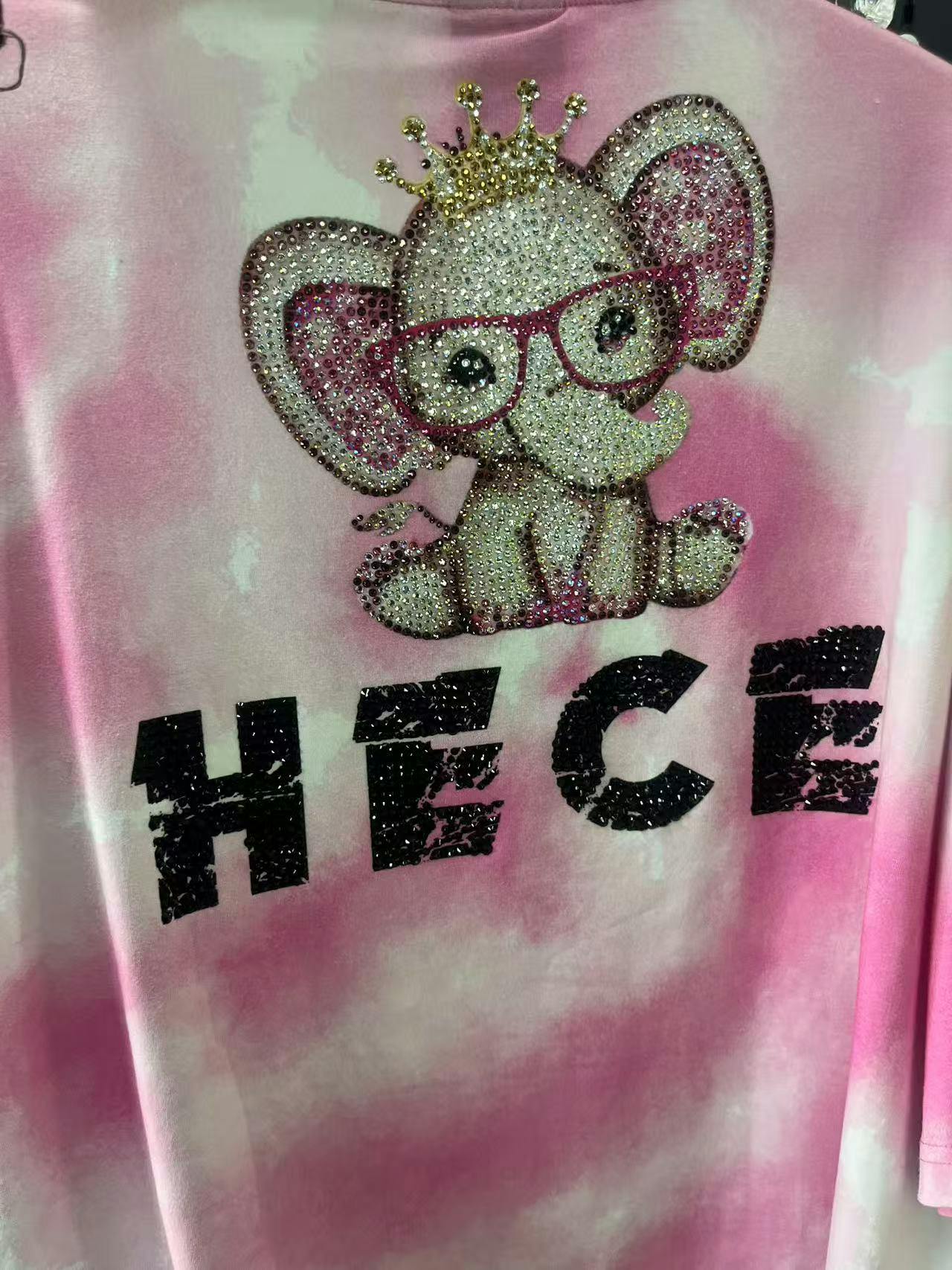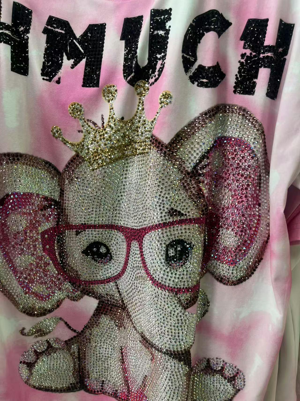 TCH Fashion Diamond-Embedded Pink Elephant T-shirt