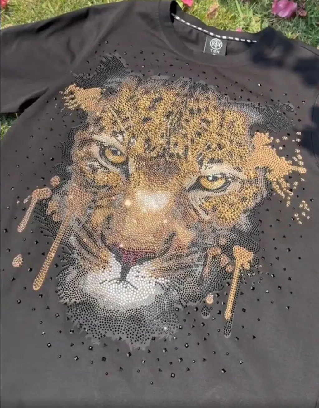 TCH Gold Rhinestone Cheetah Cotton Tee