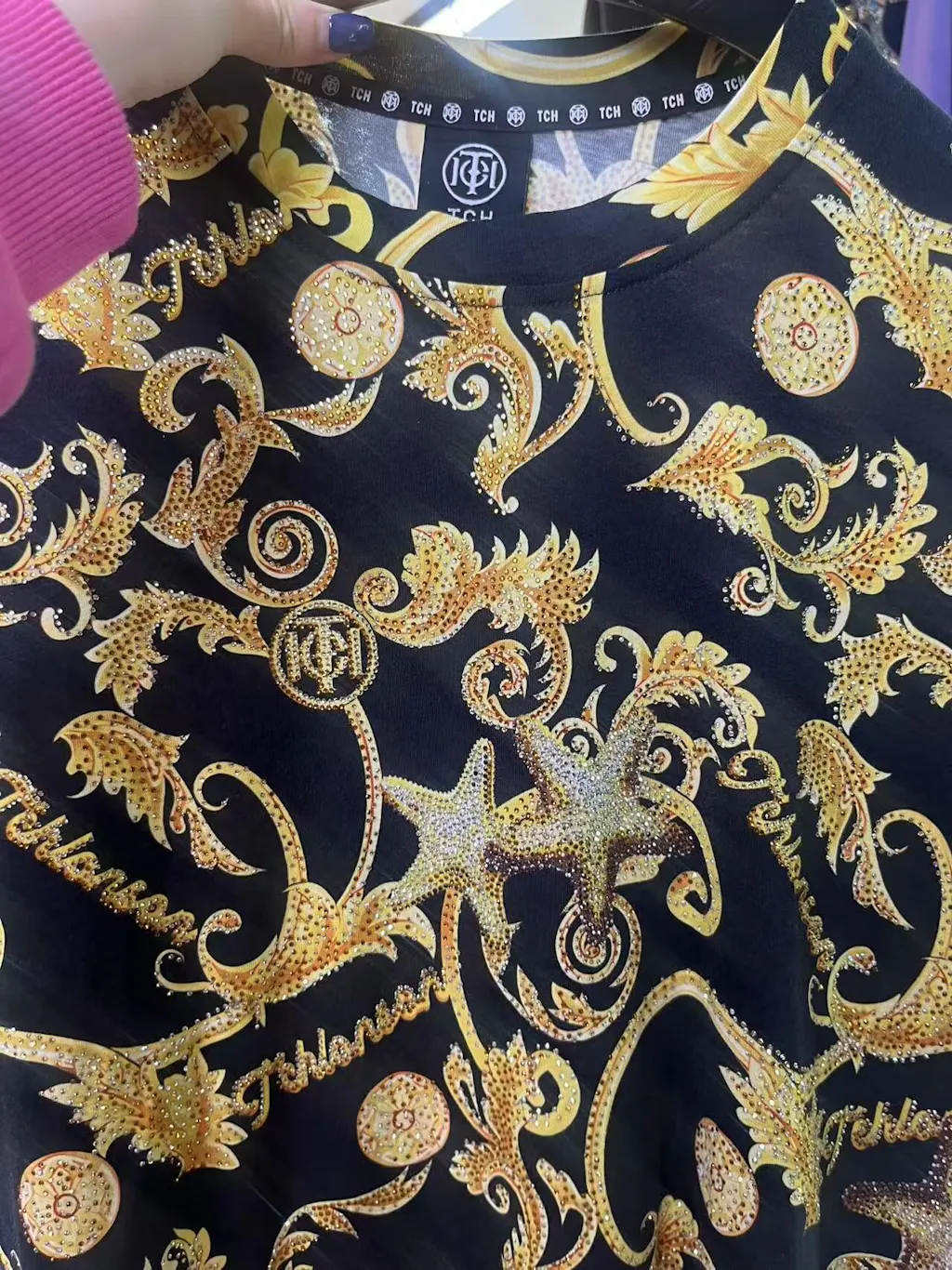 TCH Luxury Rhinestone Baroque Print T-shirt
