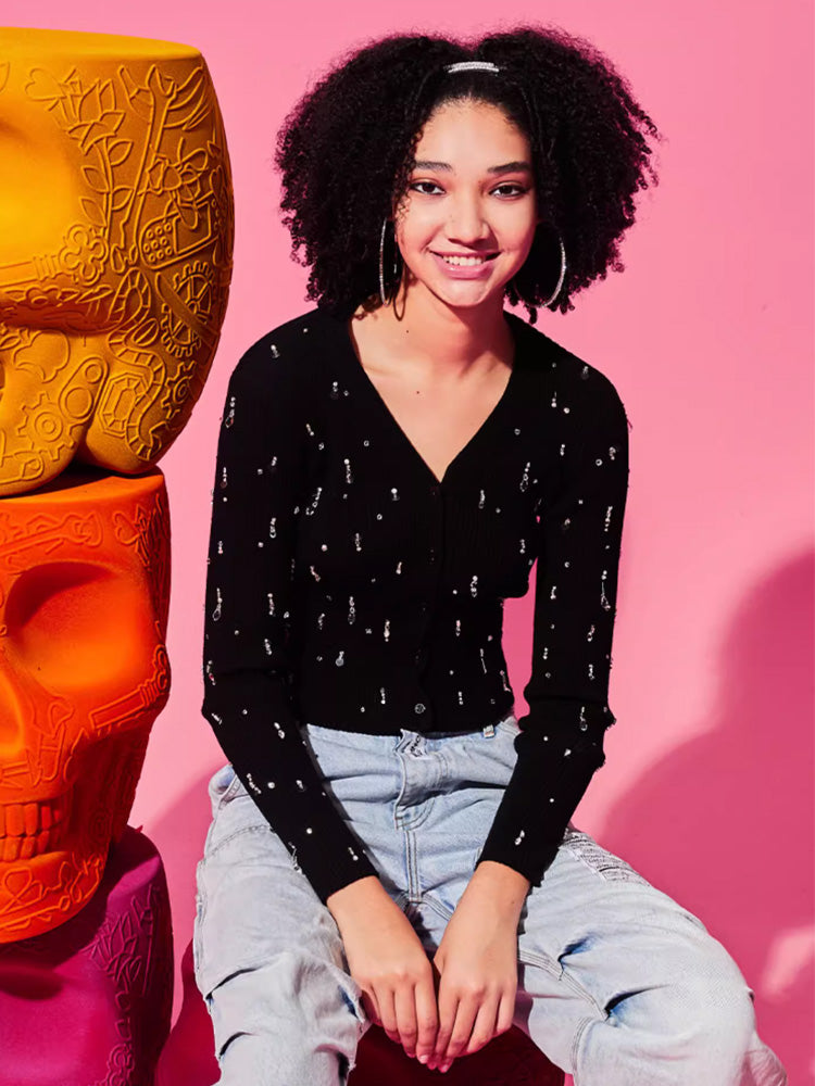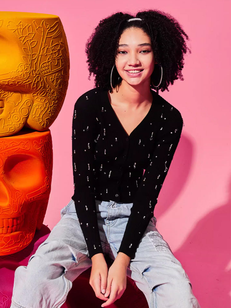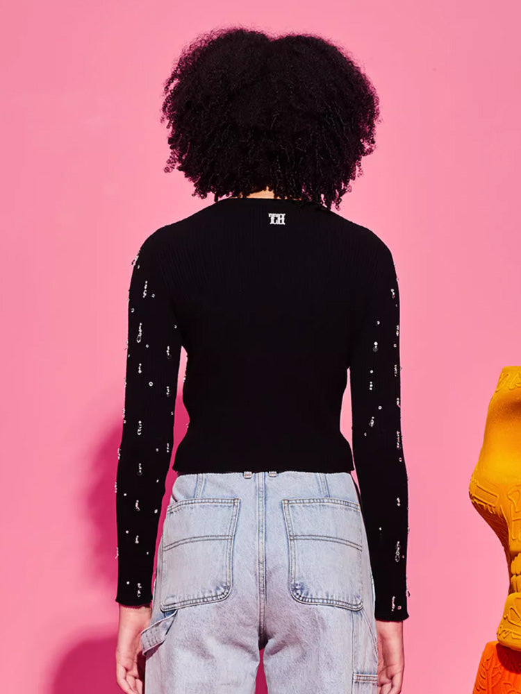TCH Rhinestone Allover Sparkle Knit Sweater