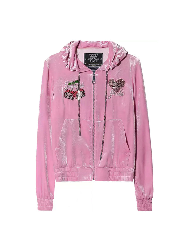 TCH Rhinestone Graphic Velour Hoodie Jacket