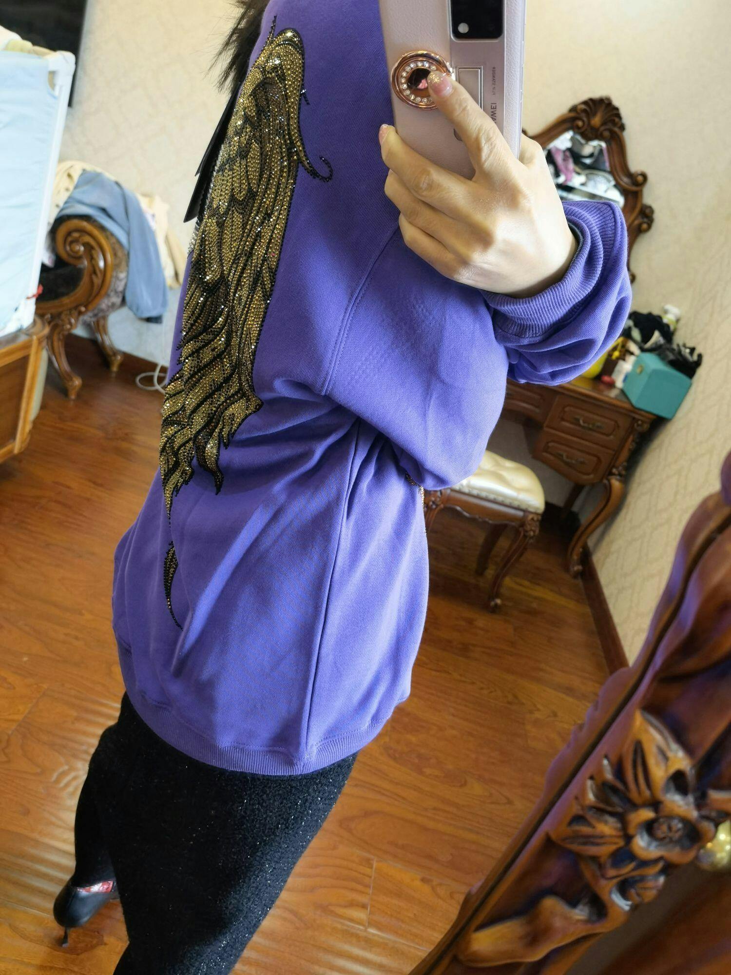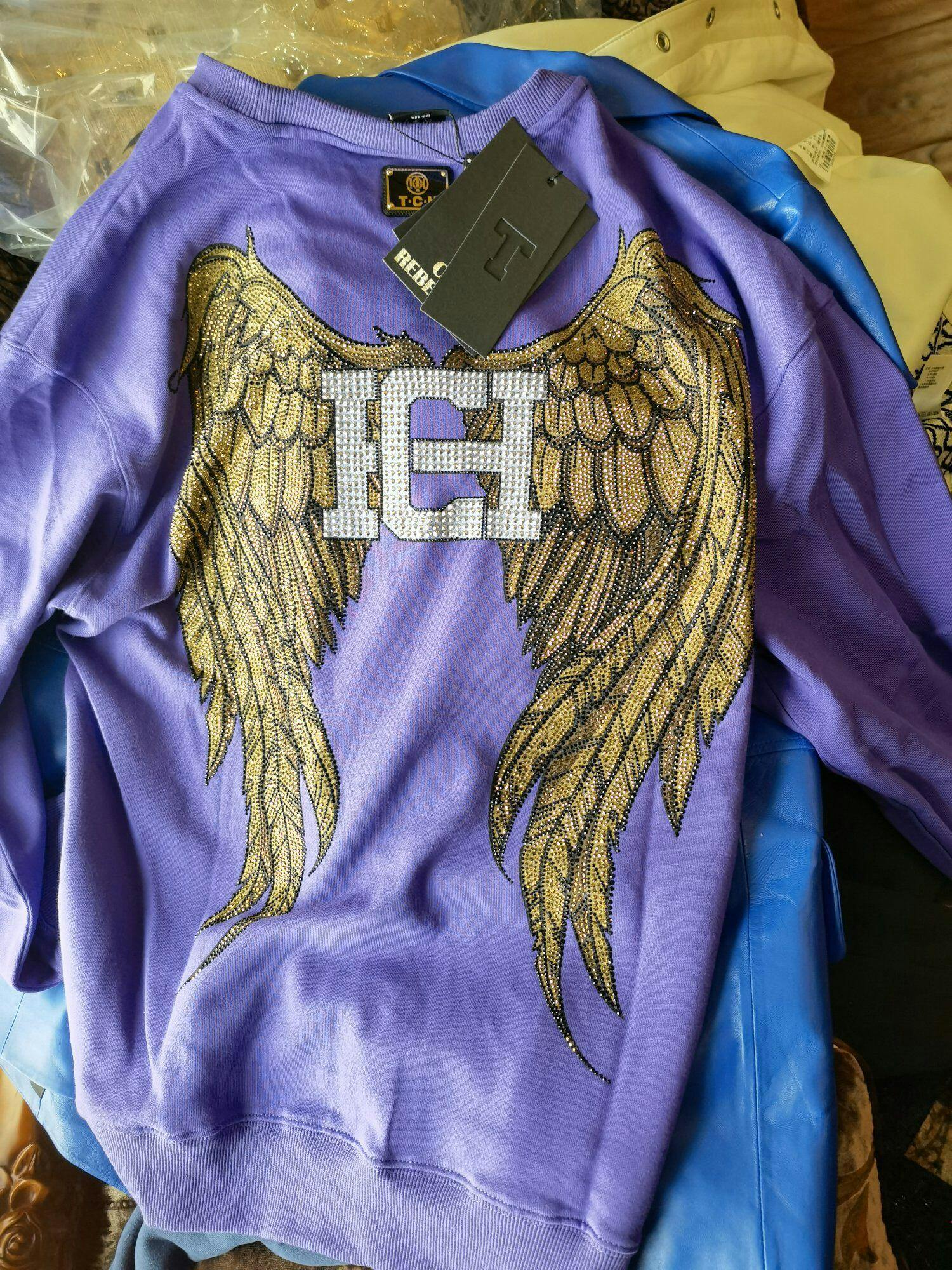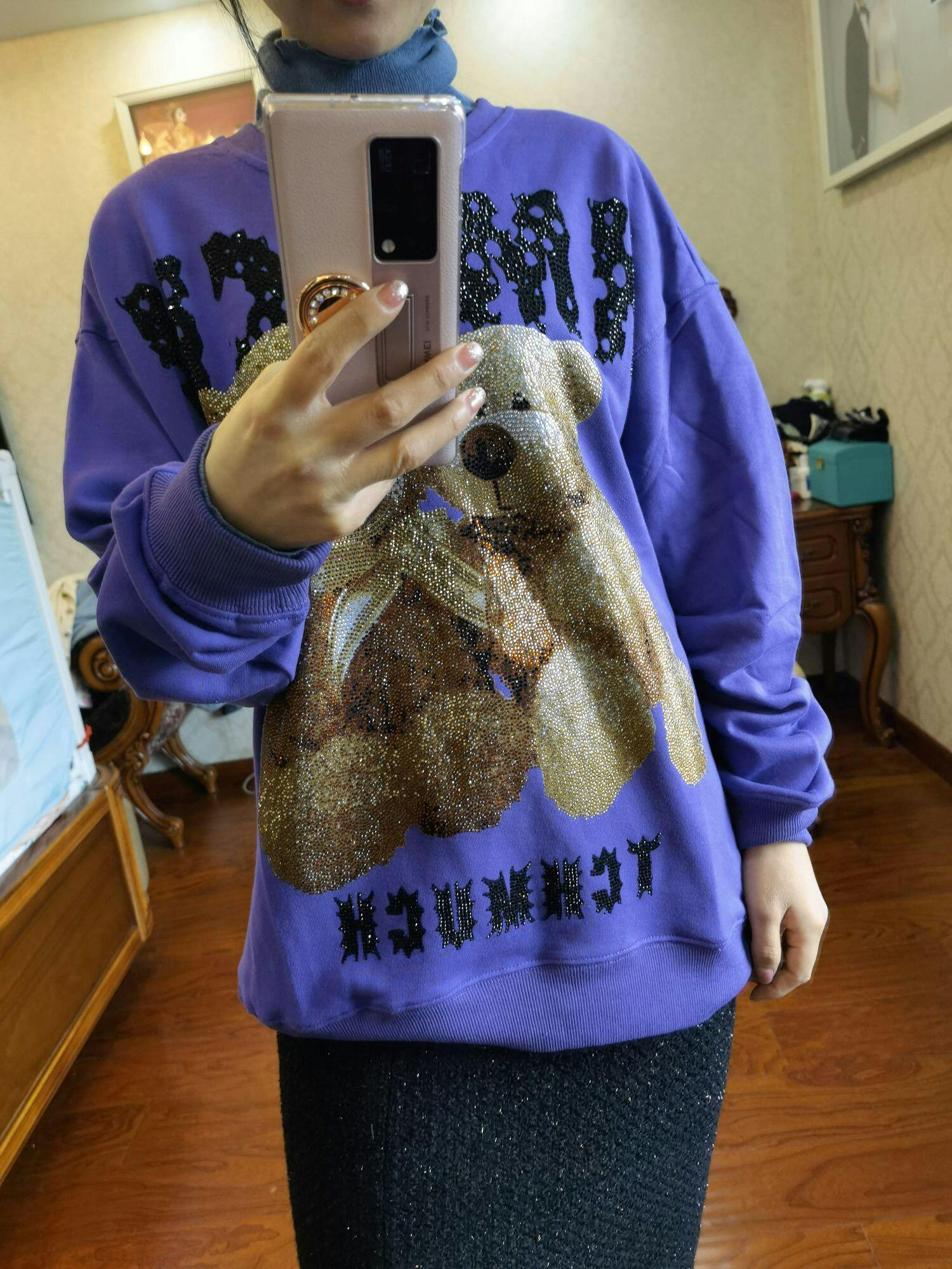 TCH Unisex Bear Rhinestone Wing Long Sleeve Sweatshirt