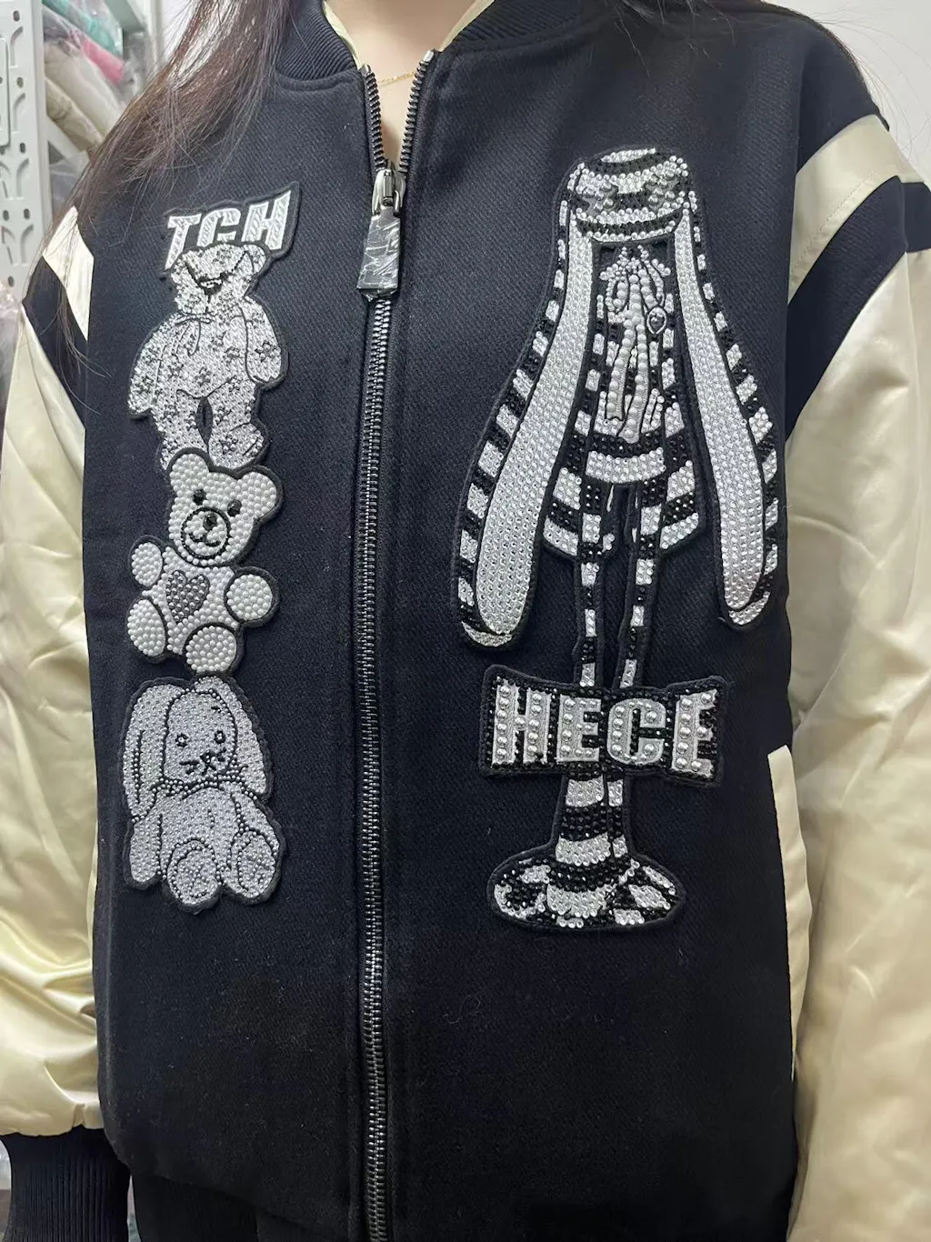 TCH Rhinestone Graphic Varsity Baseball Jacket