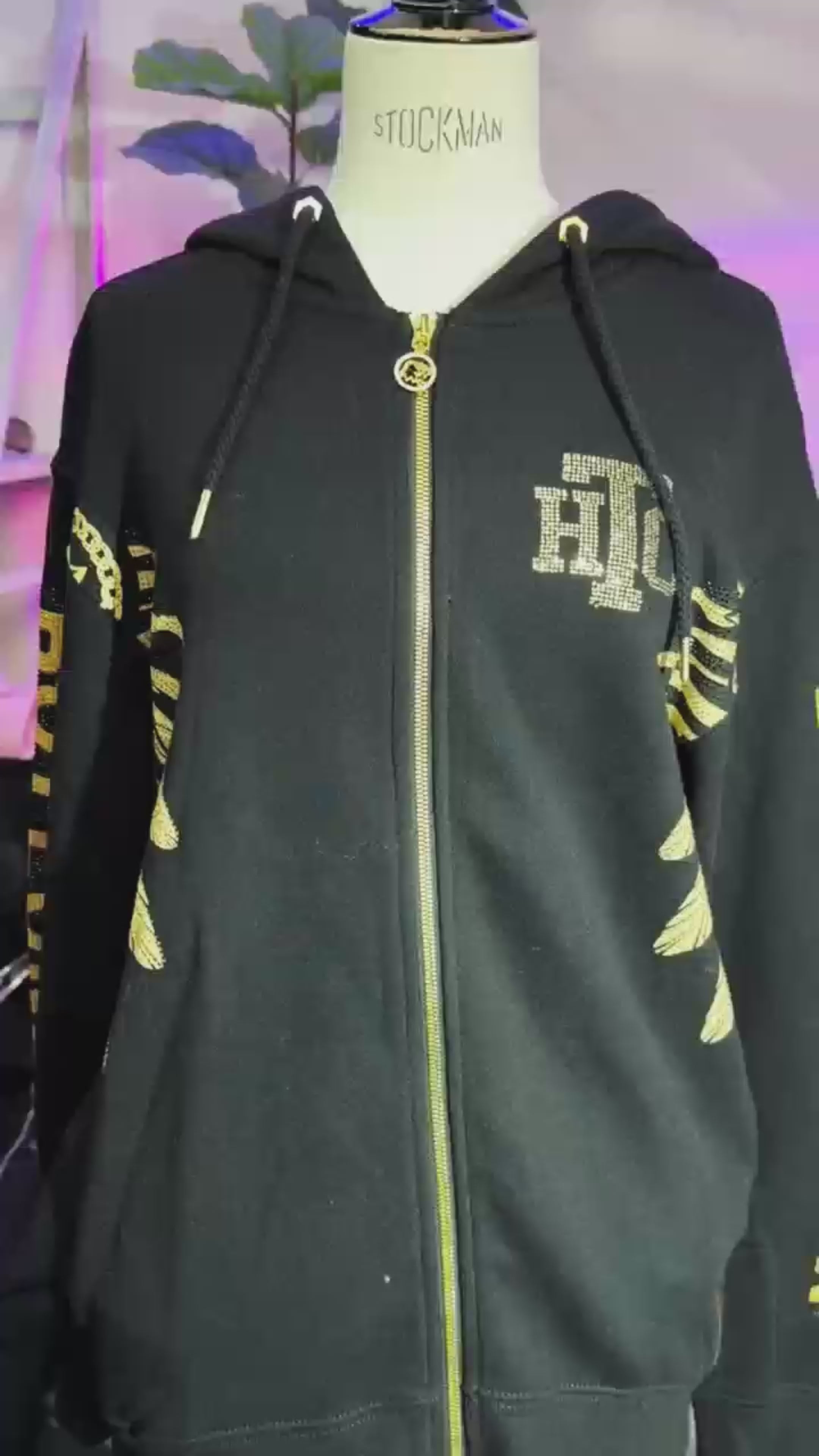 TCH Rhinestone Wings&Tiger Cotton Hoodie